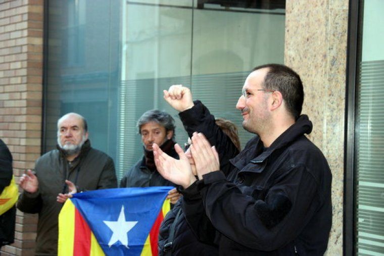 Albert Teixidor i Sylvia Barragan dijous 24 de gener abans d’entrar als jutjats de Santa Coloma de Farners