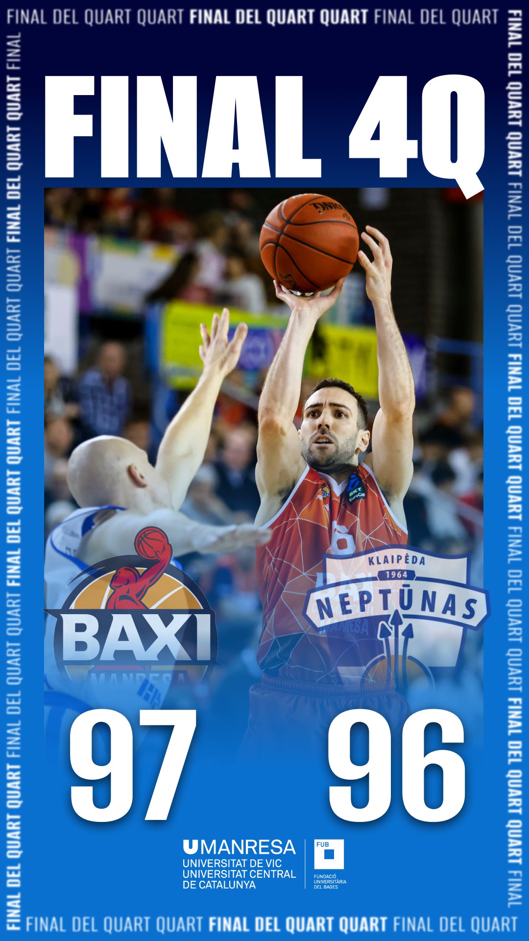 Per la seva banda, el Bàsquet Manresa també ha aconseguit una victòria importantíssima aquesta setmana per fer-se fort entre els millors del seu grup de l’Eurocup. El conjunt bagenc ha aprofitat la màgia del Nou Congost per remuntar un partit davant el Neptunas Klaipeda lituà que s’havia complicat molt en un inici. Un Louis Olinde estel·lar ha estat clau per entendre la reacció dels catalans. Ha finalitzat el duel amb 24 punts, 9 rebots i 32 de valoració. El Manresa té la segona fase de l’Eurocup gairebé a tocar.