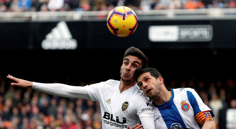 Javi López disputa una pilota amb un jugador del València
