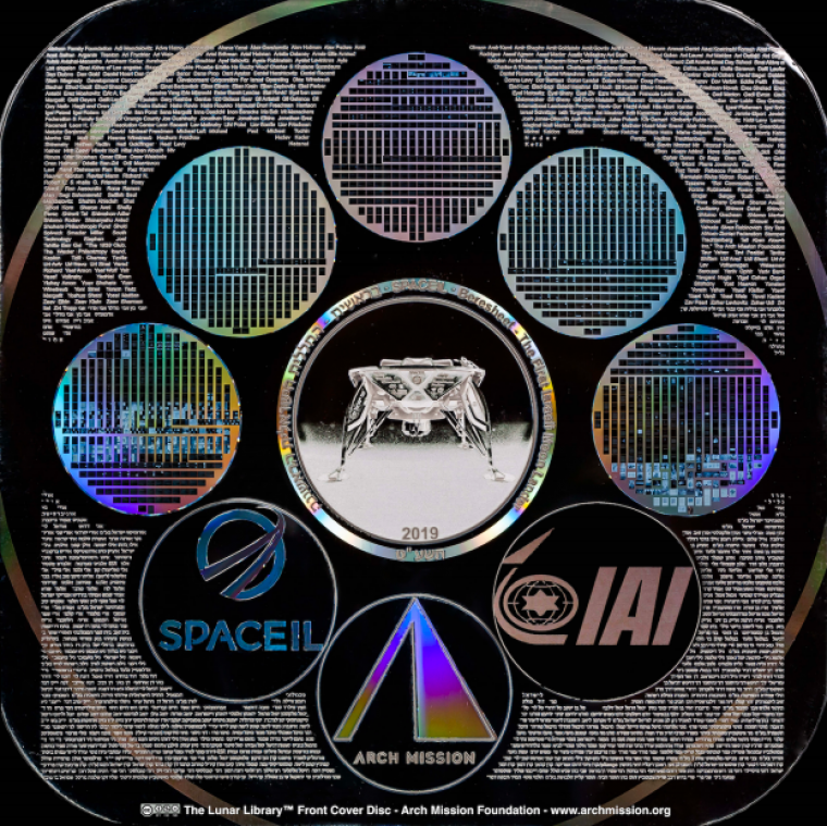 La caràtula del disc que conté la Biblioteca Lunar